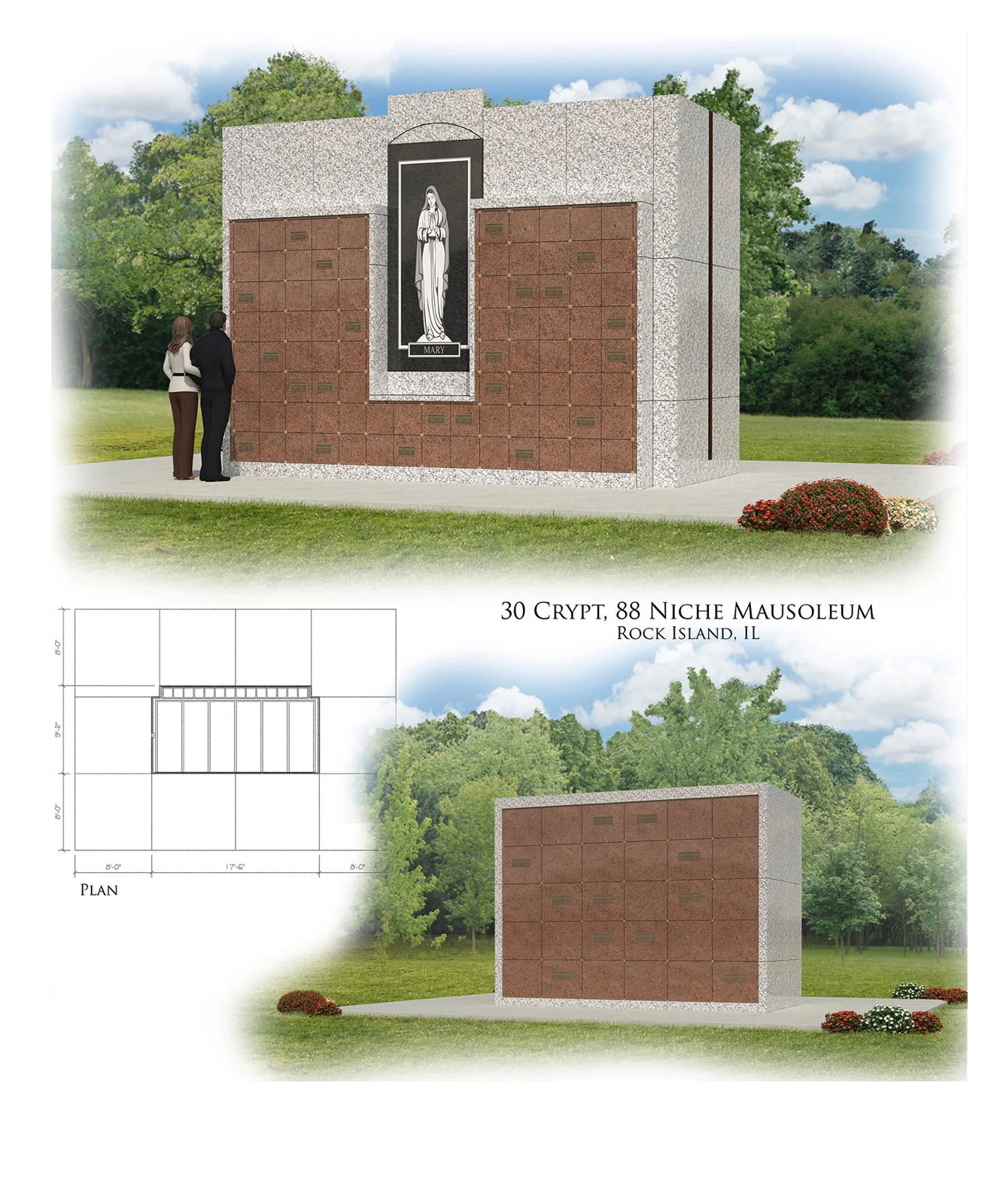 This mausoleum has 30 new crypts and 88 niches available for inurnment after cremation, but space is going quickly so please contact us today!